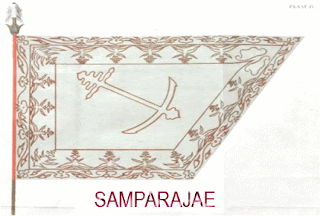 Samparaja adalah berwarna cahaya biru sutra di tengahnya terdapat jangkar dalam bordir dihiasi. Memiliki bola dalam bentuk bunga berdaun empat, dua dari daun emas, dan dua lainnya dari besi. Kedua daun ini disebut Brani yang berarti "berani" dan berubah menjadi musuh dalam pertempuran. Bola yang dihiasi dengan rambut seorang pangeran Seram yang dibunuh.